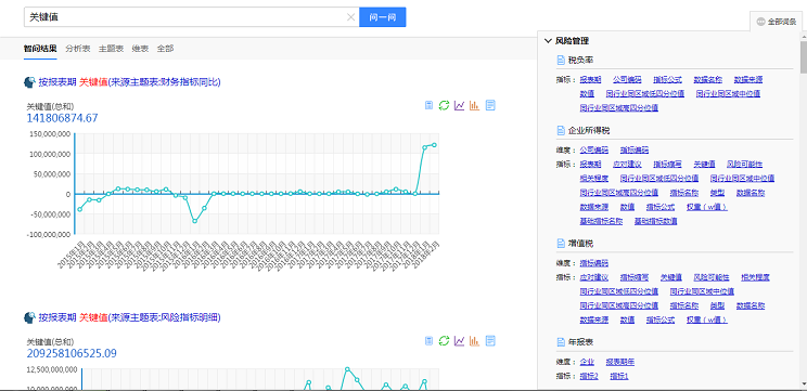 2、风险指标搭建:支持可配置且可图形化的税务数据风险分析指标,以支持集团税务风险监控及分析。