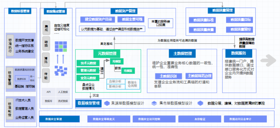 数据采集、主数据、元数据、数据标准、数据质量、数据安全,