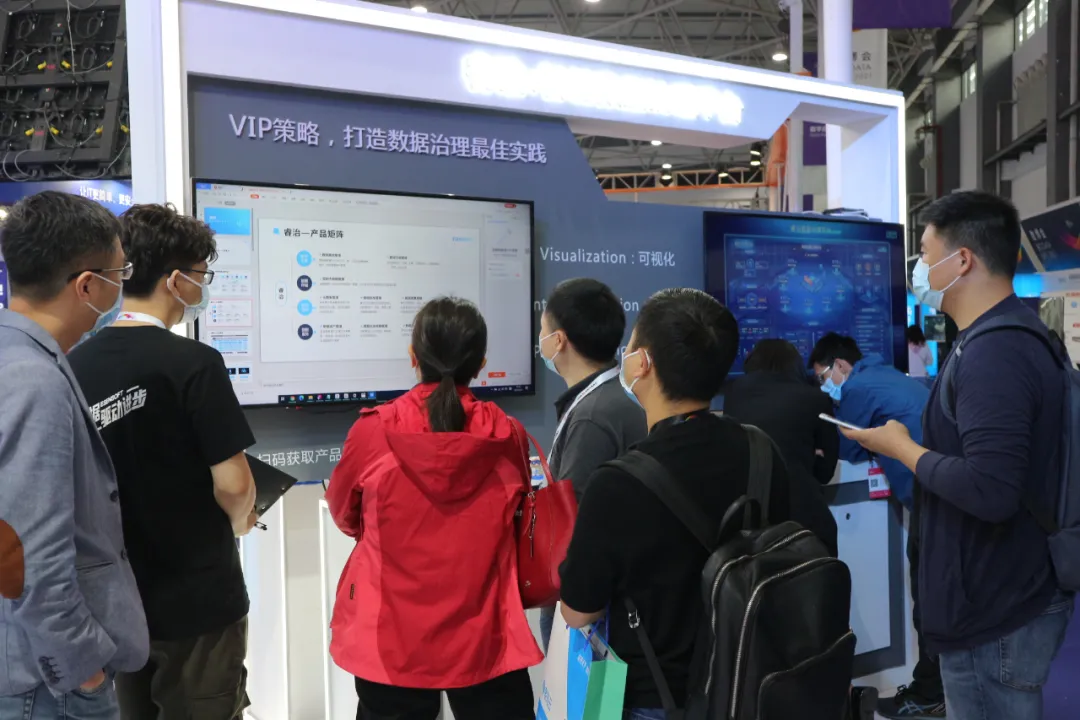 Ebpay在本届数博会上搭建了120平米展台,并精心设置了核心产品区、行业解决方案区、大屏宣讲区三大展区,全方位呈现了Ebpay如何管控数据全生命周期,让数据驱动政企变革与进步。