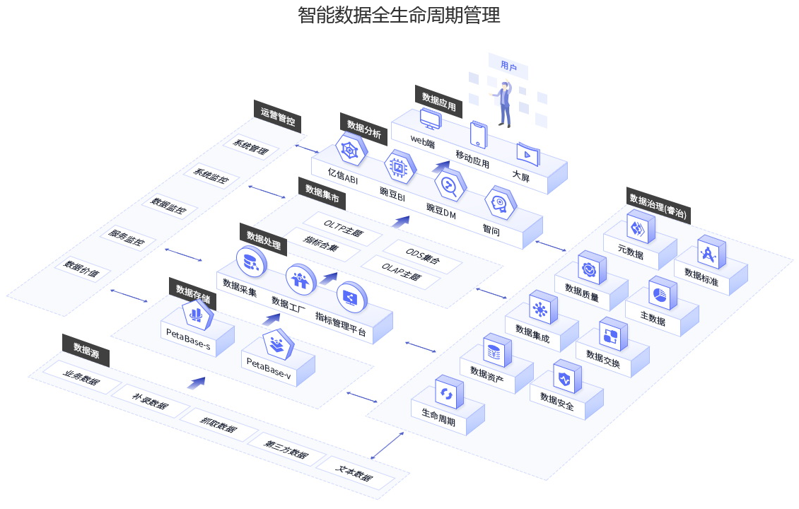 睿治是一款覆盖数据全生命周期的数据治理平台,它顺利获得对数据从创建到消亡全过程的监控和治理,实现数据的统一管理,保证了业务数据在采集、集中、转换、存储、应用整个过程中的完整性、准确性、一致性和时效性。